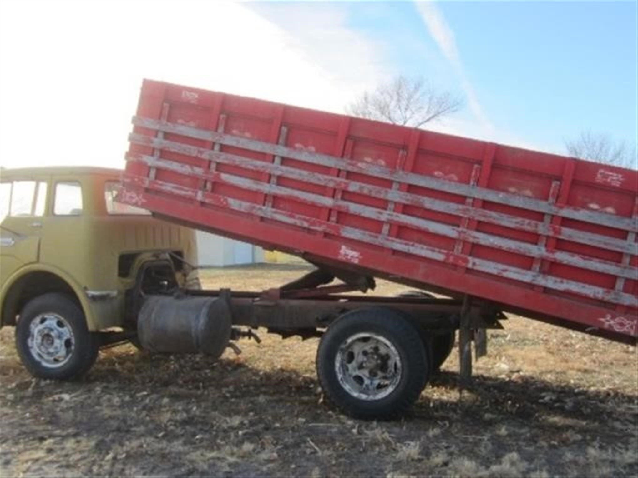 1965 Ford Straight Truck, 64981 Miles Showing, 4 Speed Hi/Lo Transmission, V8 351 Gas Engine, Single Axle, PTO, GVWR 21, 000 Lbs, 16' Box With Side Stock Racks And Schwartz Hoist, Hydraulic Brakes Need Work, Motor Had Complete Overhaul In 2009, VIN: C61BU712364