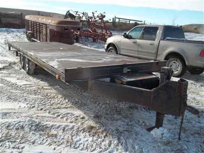 1981 Kiefer Built Inc 24-96 Flatbed Trailer, 24' Long, 2 Axle, Bumper Hitch, Includes 8' X 12" Stake Pocket Sides, 8 Bolt Wheels, Treadplate Floor, Tool Box on Hitch, GVWR 10000, VIN: FPT249475