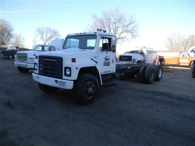 1983 International S Series F1954 Truck, 272625 Miles Showing, Dana 1372A Transmission, 6 Cylinder Turbo DT 466 Diesel Engine, Twin Screw, No Box, PTO, Wheel Base 224 Inches, Spring Suspension, Starts And Runs, Needs Batteries, Cracked Windshield, One Bad Tire, VIN: 1HTAF1954DHA33023