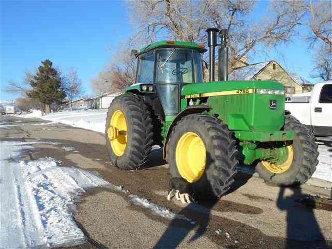 1989 John Deere 4755 Custom MFWD Tractor, 7285.2 hrs showing, 15 Speed Power Shift Transmission, 7.6L 6-cylinder Engine, Diesel, 3 Remotes Hydraulics, Duals Included, 2 Sets of 750 lb weights On Each Rear Axle, 20 Suitcase Weights, 3 Point With Quick Hitch, SN: 4755P001236