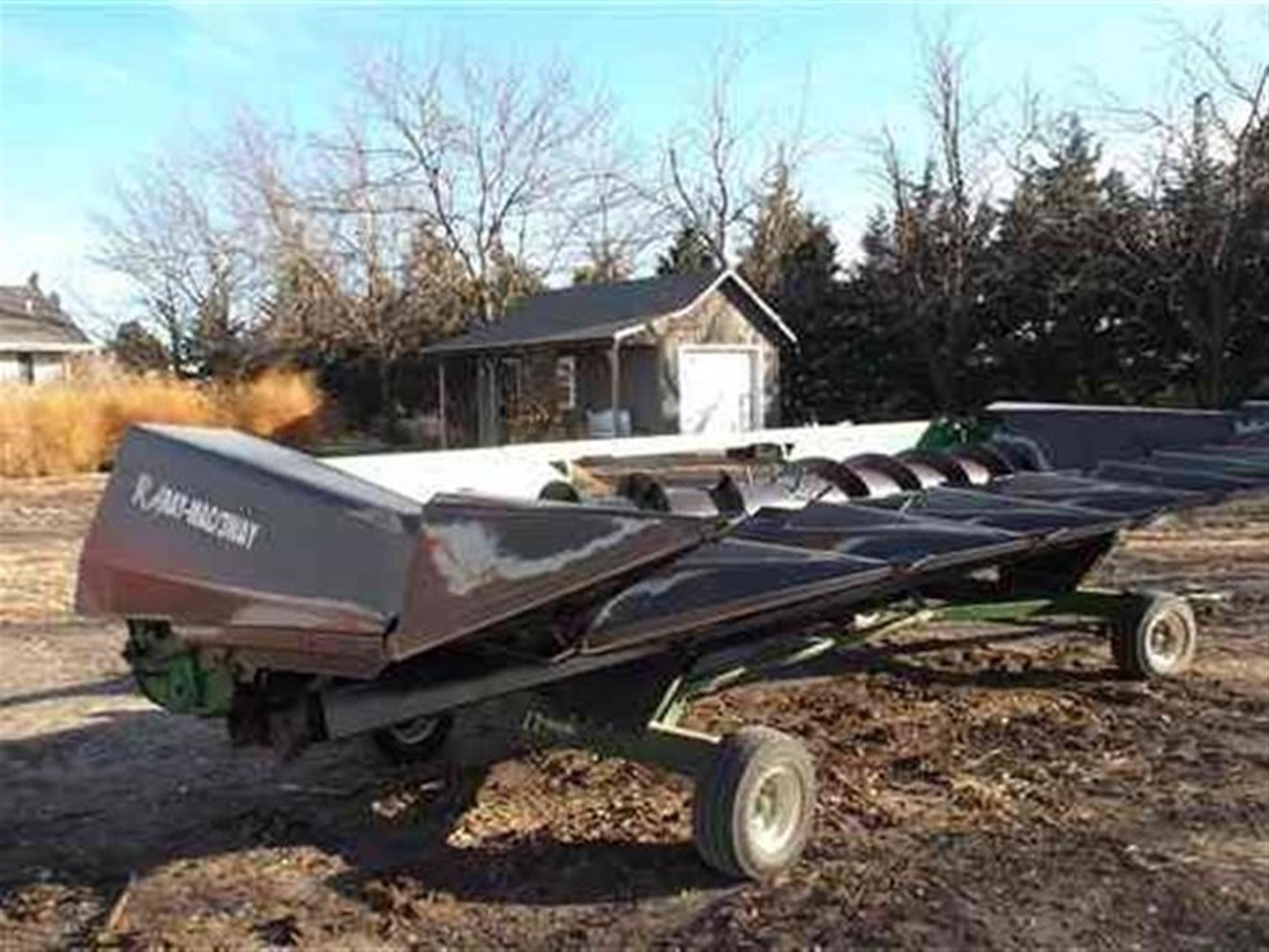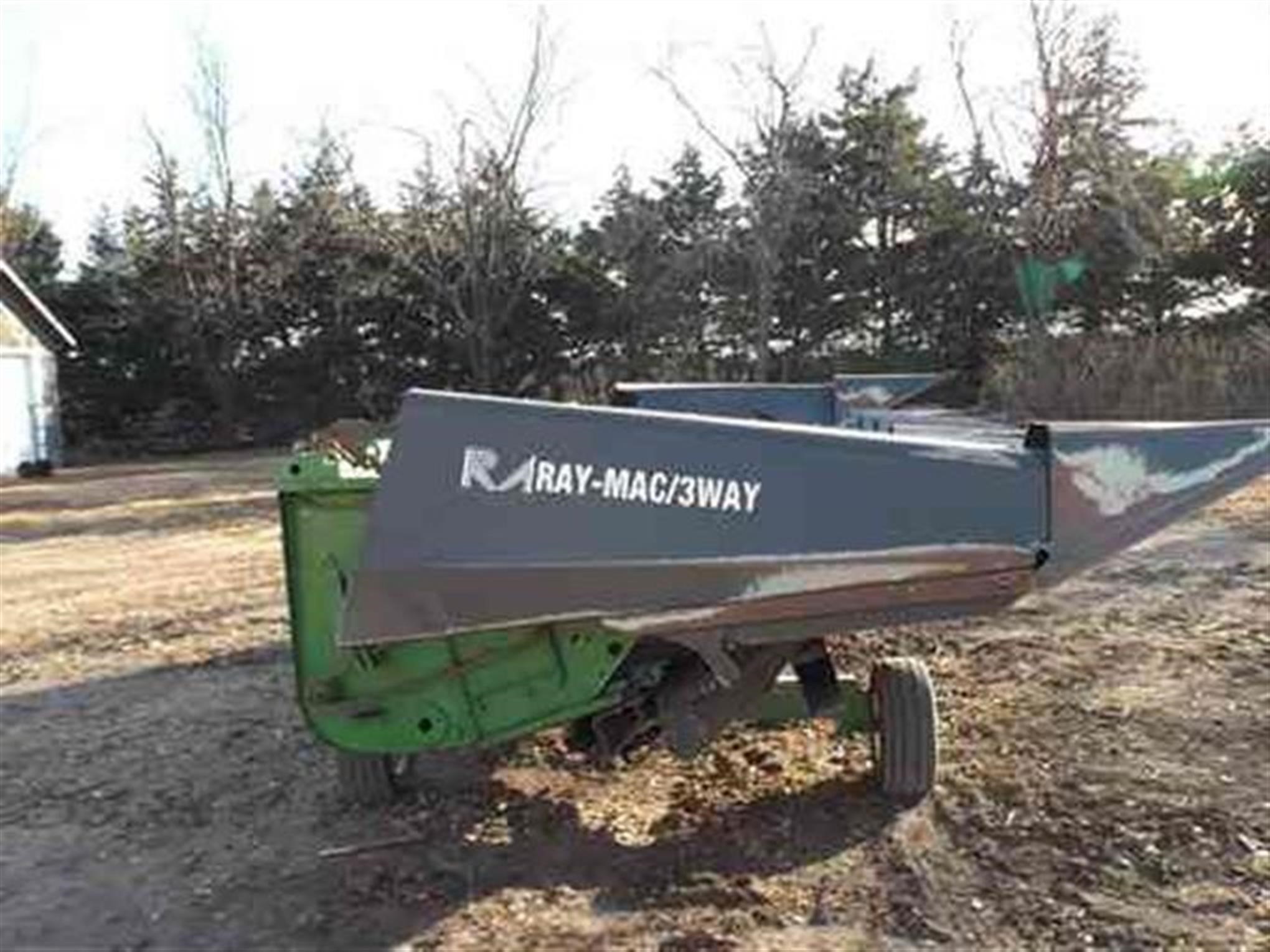 2002 Ray/Mac 3 Way Custom Header, 8R30", 20', Can be used for sunflowers-corn- milo, Adjustable snoots- up-down for variable stock height, Single point hydraulic hookup, hydraulic PTO drive, Row unit augers are hydraulic, Was on new style John Deere combine, Cut 400 acres of sunflowers 2013 season-few days before pics, 680 EZ Trail header trailer is included in this sale, Tires 20.5x8.0x10, SN: 375816