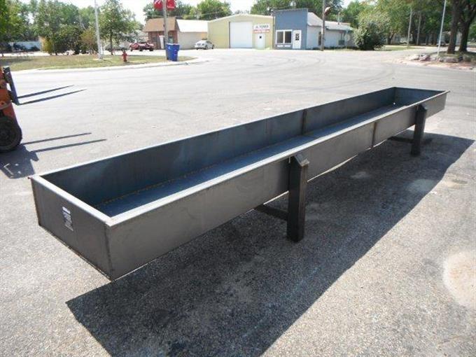 1972 Unused Metal Bunk, Qty ( 1 ), 32” Wide Inside Bunk, 12” Depth, 20' Length, 28” Height, 10 Gauge Steel, 4” X 4” Steel Square Legs, Water Drains Cut In Each End, Buyer please contact seller and set up an arrangement on pick up times and dates. Buyers that do not call and items that are not picked up within 14 days after sale date will be charged $20 a day storage fee
